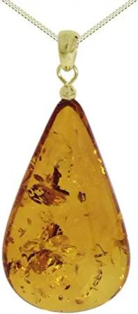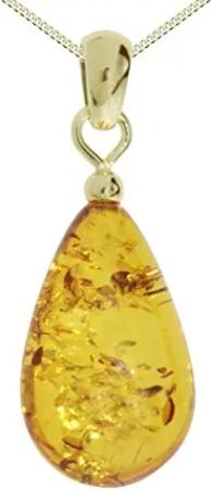 Kette mit Anhänger - Tropfen ca. 30 mm lang - Silber 925/000, vergoldet - Bernstein