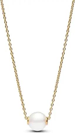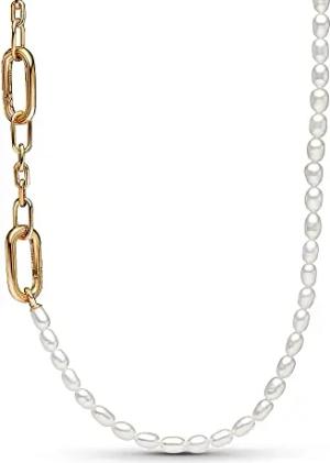 ME Schmale Halskette aus behandelten Süßwasserzuchtperlen und vergodeter Metalllegierung, Kompatibel ME, 45mm, 362302C01-45