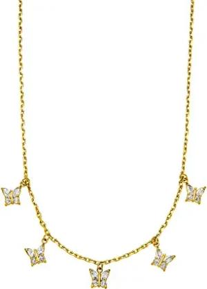 Butterfly Kette (Gold), Wasserfeste Halskette für Damen mit 5 Anhängern in Schmetterlingsform, Damenhalskette aus Edelstahl mit Edelsteinen, Geschenk für Frauen, 40-45 cm Länge verstellbar