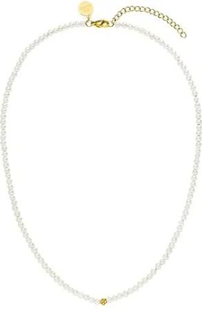 Pearl Drop Kette (Gold), Wasserfeste Halskette mit Perlen für Frauen, Elegante Halskette aus Edelstahl, Geschenk für Frauen, 35-40 cm Länge verstellbar