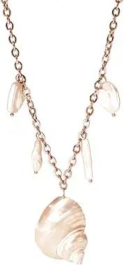 Opulent Shell Kette – Muschelkette mit Süßwasserperlen – 18K vergoldet, Edelstahl – Eleganter Muschelschmuck – Sommer-Accessoire Damen – Länge 35/40/45 cm (Rosegold)