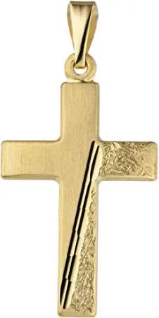 Anhänger Kreuz mit Streifen Aufgang, 333 Gold Gelbgold, teilmatt teilgehämmert
