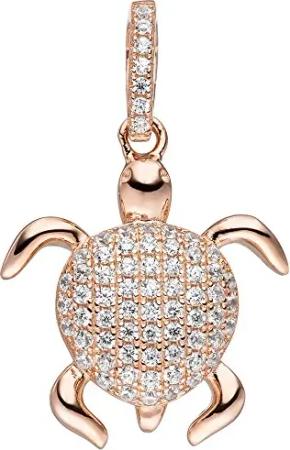 Anhänger Schildkröte runder Panzer weiße Zirkonia 925 Silber Rotgold vergoldet