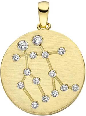 Anhänger Sternzeichen Zwilling 15 Zirkonia 333 Gold Gelbgold matt Halsschmuck