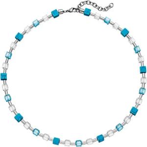 Halskette Collier Kristallsteine Türkis-Würfel & Zylinder aus Edelstahl 43-48cm