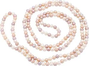 Lange Kette aus Perlen Süßwasserperlen multicolor weiß rosa violett endlos Perlenkette für Damen