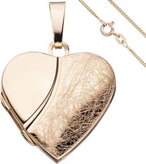 Schmuck-Set Medaillon Herz auf 1,3mm Panzerkette 925 Silber rotvergoldet, 50cm
