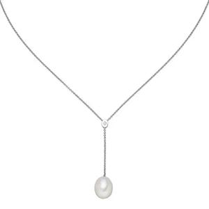 Y-Kette Collier mit Süßwasser Perle creme-weiß Zirkonia 925 Silber 42-45cm Damen