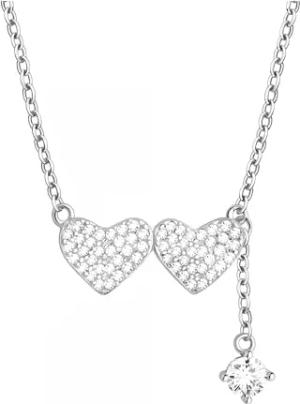 Damen Halskette 925 Silber - mit Zirkonia Steinen - Doppeltes Herz Anhänger - N0820