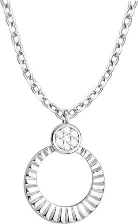 Damen Halskette 925 Silber - mit Zirkonia Steinen - Geriffelter Kreis Anhänger - N0869