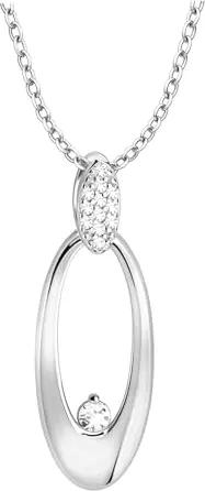 Damen Halskette 925 Silber - mit Zirkonia Steinen - Ovaler Anhänger - N0875
