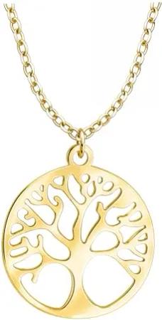 Damen Halskette 925 Silber - vergoldet/golden - Baum Kreis Anhänger - N0900