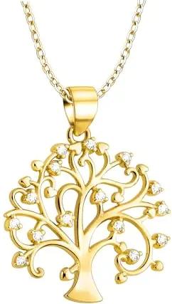 Damen Halskette 925 Silber - vergoldet/golden - mit Zirkonia Steinen - Baum Anhänger - N0852