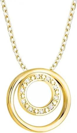 Damen Halskette 925 Silber - vergoldet/golden - mit Zirkonia Steinen - Kreise Anhänger - N0878