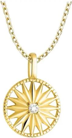Damen Halskette 925 Silber - vergoldet/golden - mit Zirkonia Steinen - Sonnen Sternen Kreis Anhänger - N0890