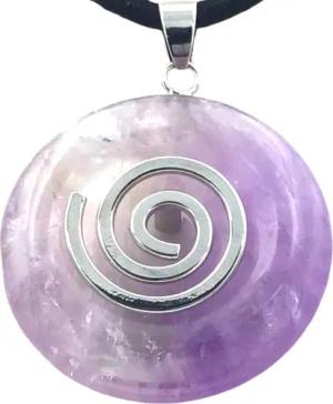 - Premium Amethyst Donut A+ Qualität optional als Kette mit Silber- oder Goldanhänger und 80cm Lederband | Heilstein | Edelstein | Chakra-Stein (Donut mit Silberspirale)