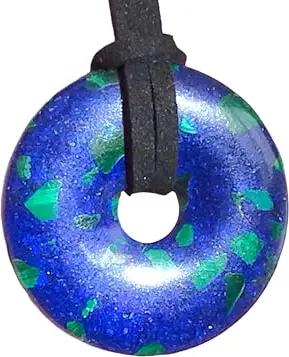 - Premium Azurit-Malachit Donut synth. optional als Kette mit Silber- oder Goldanhänger und 80cm Lederband | Heilstein | Edelstein | Chakra-Stein (Donut mit 80 cm Band)