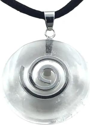 - Premium Bergkristall Donut A+ Qualität optional als Kette mit Silber- oder Goldanhänger und 80cm Lederband | Heilstein | Edelstein | Chakra-Stein (Donut mit Silberspirale)