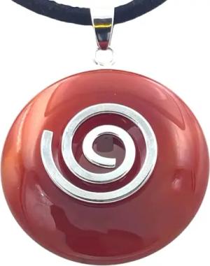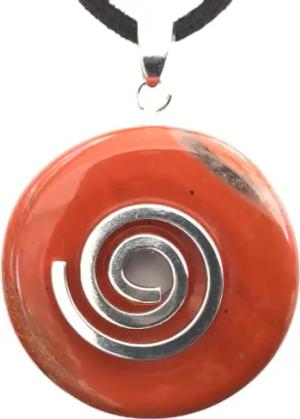 - Premium Jaspis rot Donut optional als Kette mit Silber- oder Goldanhänger und 80cm Lederband | Heilstein | Edelstein | Chakra-Stein (Donut mit Silberspirale)