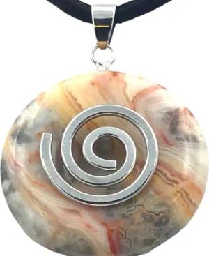- Premium Crazy Lace Donut optional als Kette mit Silber- oder Goldanhänger und 80cm Lederband | Heilstein | Edelstein | Chakra-Stein (Donut mit Silberspirale)