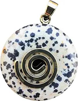 - Premium Dalmatiner Jaspis Donut optional als Kette mit Silber- oder Goldanhänger und 80cm Lederband | Heilstein | Edelstein | Chakra-Stein (Donut mit Goldspirale)
