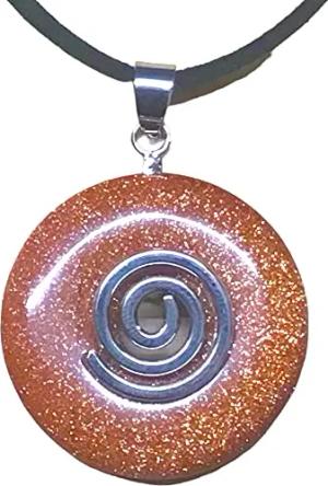 - Premium Goldfluss Donut optional als Kette mit Silber- oder Goldanhänger und 80cm Lederband | Heilstein | Edelstein | Chakra-Stein (Mit Goldspirale)