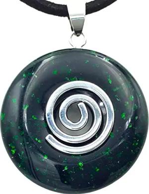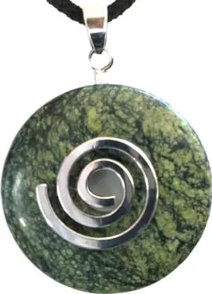 - Premium Grünfluss Donut optional als Kette mit Silber- oder Goldanhänger und 80cm Lederband | Heilstein | Edelstein | Chakra-Stein (Donut mit Silberspirale)