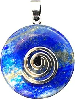 - Premium Lapislazuli Donut optional als Kette mit Silber- oder Goldanhänger und 80cm Lederband | Heilstein | Edelstein | Chakra-Stein (Donut mit Silberspirale und Lederband)