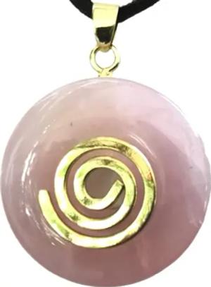 - Premium Rosenquarz Edelstein Donut optional als Kette mit Gold- oder Silberanhänger oder 80cm Lederband | Heilstein | Edelstein | Chakra-Stein (Mit Goldspirale)