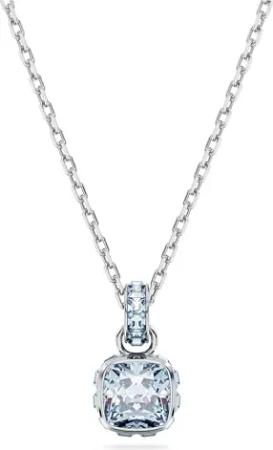Birthstone Anhänger März, Blaue und Rhodinierte Damenhalskette mit Swarovski Kristallen