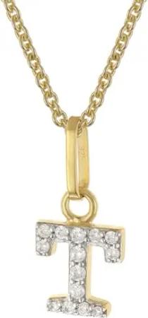 28266-T Damen-Kette mit Buchstabe T Anhänger 925 Silber Vergoldet
