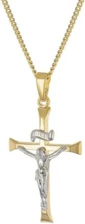 39040 Kreuz-Anhänger 333 Gold Bicolor 18 mm + Vergoldete Silberkette