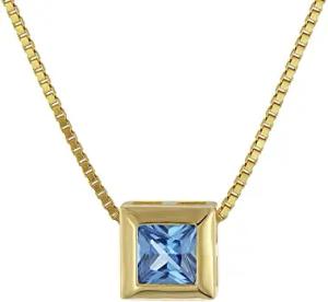 68934 Damenkette Silber Vergoldet Mit Synthetischem Blautopas Anhänger