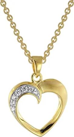 28430 Damen-Halskette 925 Silber Vergoldet Mit Zirkonia-Herz