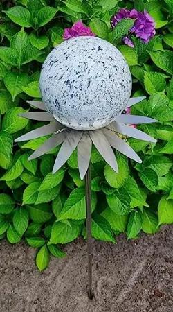 Gartenstecker Rosenkugel 10 cm Edelstahl mit Marmorlackierung in violett auf Stab 80 cm