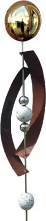 Gartenstecker Skulptur Deimos 145 cm aus Cortenstahl & Edelstahl mit obere Kugel Edelstahl Gold poliert