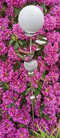 Blütenzauber Milano Rosenkugel 10 cm Edelstahl Gartenstecker Deko mit Stab 80 cm (weiß)