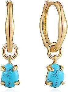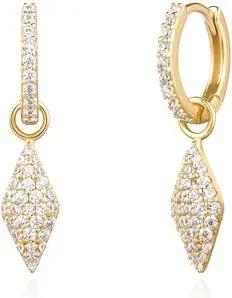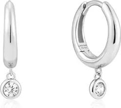 Damen Creolen Sunshine Chaser Cubic Zirconia Drop Huggies 925 Sterling Silber, verziert mit 2 Zirkonia, Größe: 8,5 x 1,5-2,7mm, inkl. Geschenkverpackung