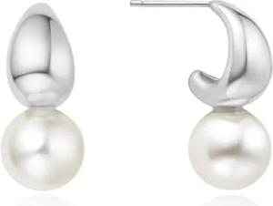 HOOP EARRINGS - FRESHWATER PEARL DROP - silver
