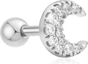 EARRINGS - SINGLE STUD - Pave Crescent Moon Barbell - silver