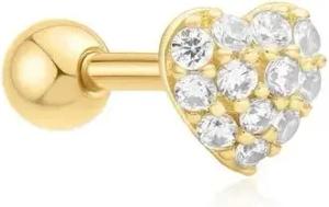 EARRINGS - SINGLE STUD - Pave Heart Barbell - gold