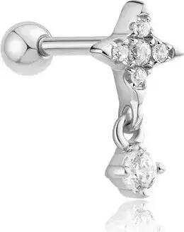 EARRINGS - SINGLE STUD - Star Dangle Barbell - silver