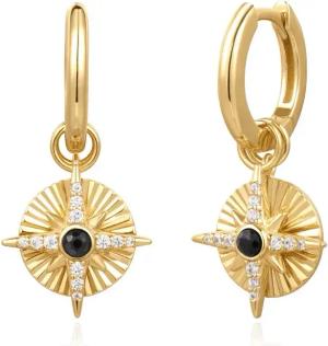 HOOP EARRINGS - HUGGIES - Astrolabe Charm - gold