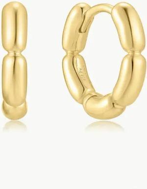 HOOP EARRINGS - HUGGIES - Segmented Puffy Shield - shiny gold