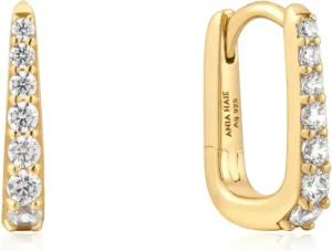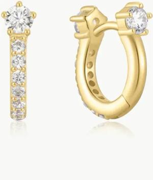 Damen Creolen Dusk Divas Pavé Sparkle Huggies aus 925 Sterling Silber 14k Gold vergoldet, besetzt mit 82 Zirkonia, Größe: 8,5 x 1,5mm, inkl. Geschenkverpackung