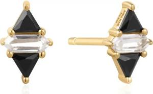 STUD EARRINGS - TRIANGLE - Black/White Cubic Zirconia - gold