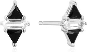 STUD EARRINGS - TRIANGLE - Black/White Cubic Zirconia - silver