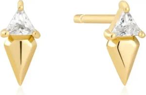 Damen Ohrstecker SUNSHINE CHASER Triangular Pavé Studs aus 925 Sterling Silber 14k vergoldet, besetzt mit 44 Zirkonia, Größe: 10 x 4,8 mm, inkl. Geschenkverpackung