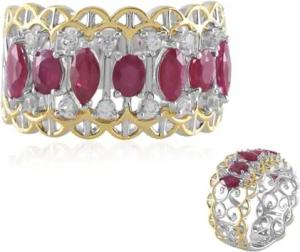 Burmesischer Rubin Silberring 925 Sterling Silber mit 1,485 ct Rubinen Marquise- & Ovalschliff, Eleganter Schmuck aus Myanmar mit Zirkon Akzenten, Modernes Design in Rot & Silber