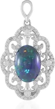 Mezezo Opal Anhänger Silber 925 Sterling platiniert 3,211 ct Äthiopischer Opal ovaler Cabochon mit 72 funkelnden Zirkonen eleganter Schmuck 39x21 mm